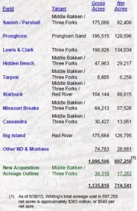 Whiting has now assembled a 714,541 net acreage position in the region at a cost of $643 million or less than $900/acre.